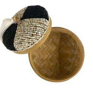 Dit kralen sieradendoosje past perfect binnen verschillende interieurstijlen, zoals boho, modern, Scandinavisch of landelijk. Het is niet alleen functioneel, maar ook een prachtig decoratief item dat warmte en textuur toevoegt aan je woning