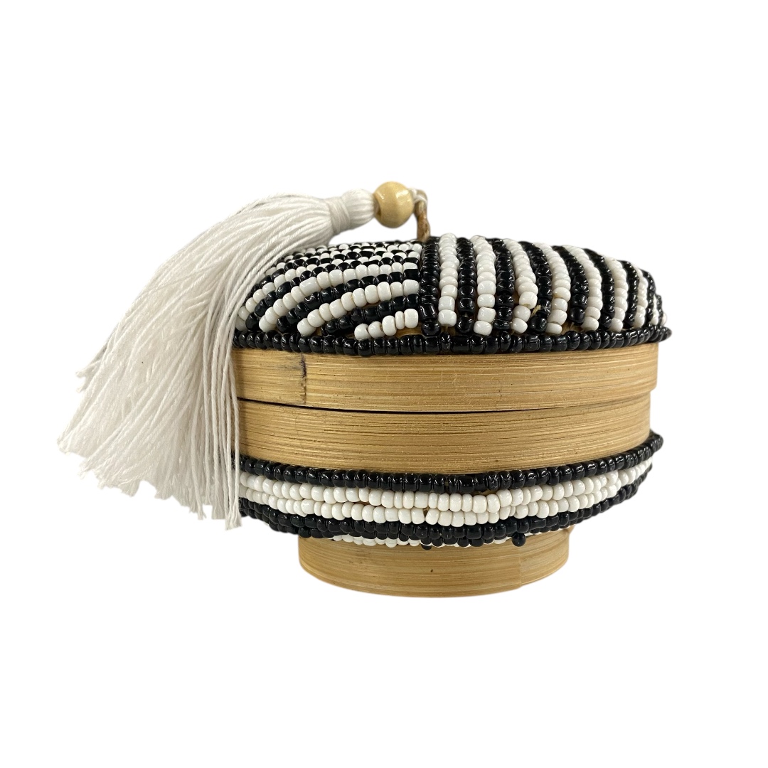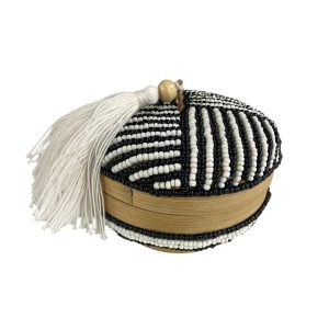 Dit kralen sieradendoosje past perfect binnen verschillende interieurstijlen, zoals boho, modern, Scandinavisch of landelijk. Het is niet alleen functioneel, maar ook een prachtig decoratief item dat warmte en textuur toevoegt aan je woning