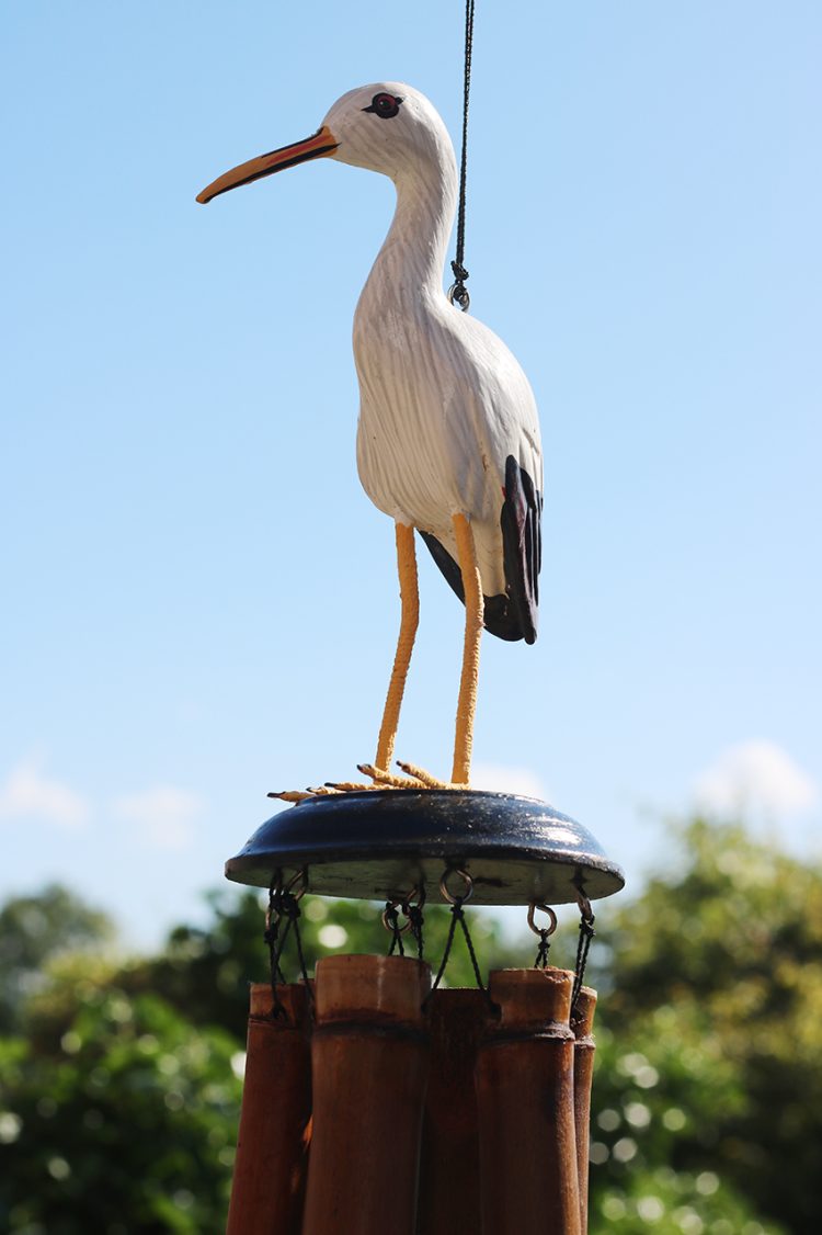 Een windgong komt oorspronkelijk uit het oosten. Het geluid van de windmobiel is mystiek en vrolijk. De volgorde van klanken wordt bepaald door de wind en het volume van de klanken wordt bepaald door de windkracht.