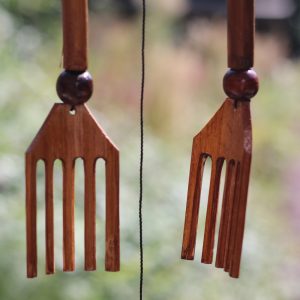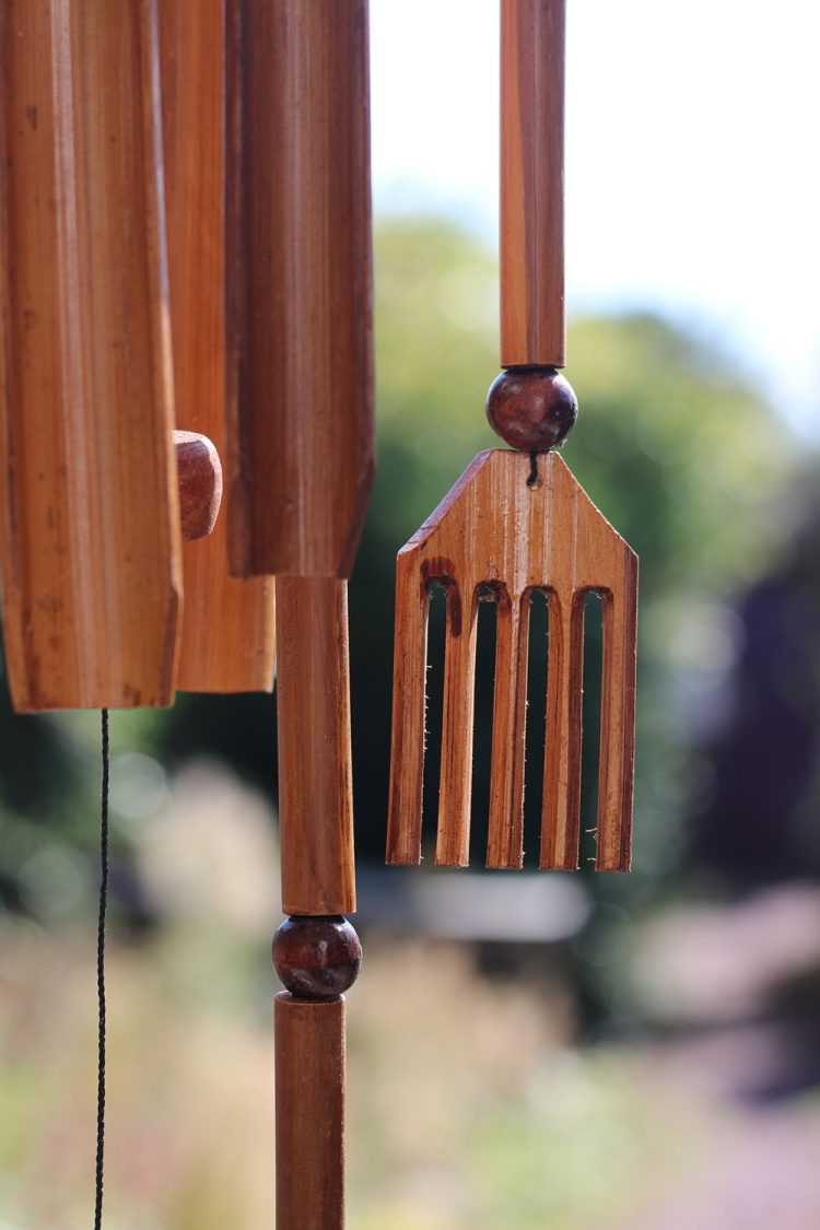 Een windgong komt oorspronkelijk uit het oosten. Het geluid van de windmobiel is mystiek en vrolijk. De volgorde van klanken wordt bepaald door de wind en het volume van de klanken wordt bepaald door de windkracht.