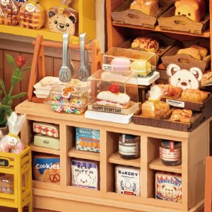 Rolife Becka’s Baking House DIY Miniature House presenteert een bakkerij net als een echte. Nadat je klaar bent met de montage, lijkt het alsof je de geur van het brood kunt ruiken. Er zijn verschillende soorten brood in de bakkerij.