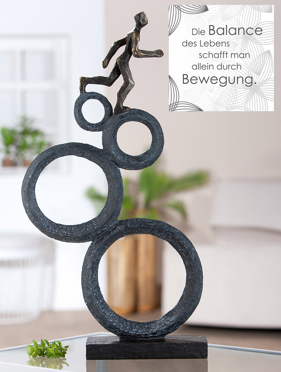 beeld rennende man, modern sculptuur man, balans beeld kunst, abstract beeld beweging, sportief kunstbeeld, man op cirkels beeld, dynamisch kunstobject, moderne woondecoratie beeld, design sculptuur man, abstracte kunst balans
