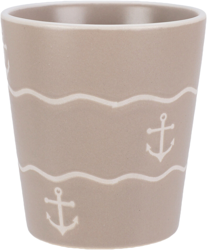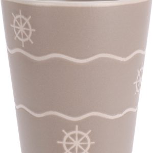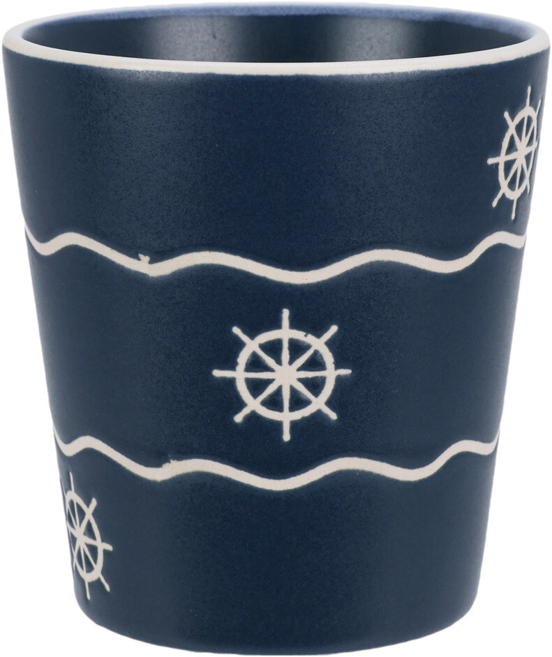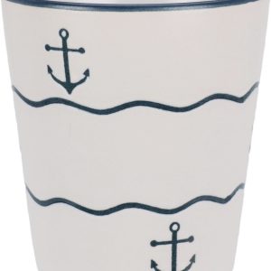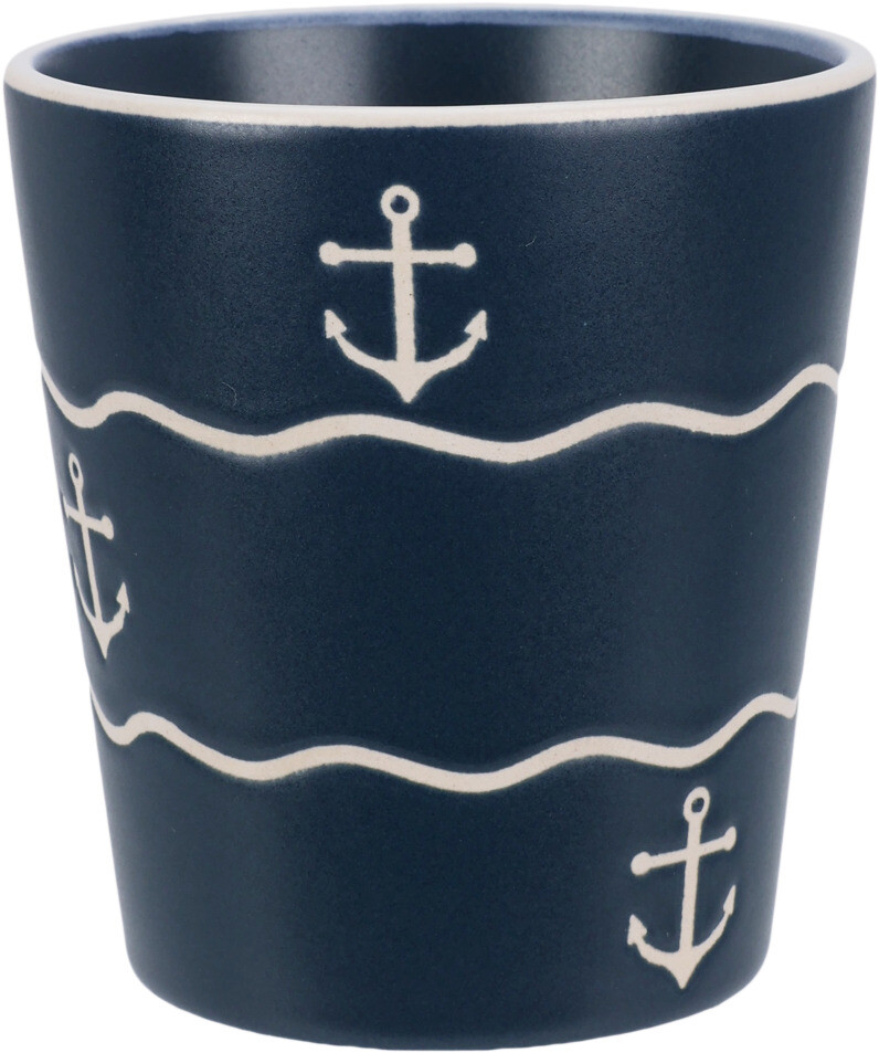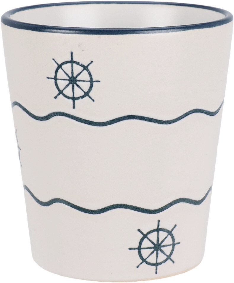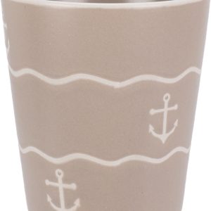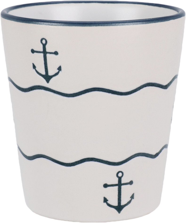 Deze stijlvolle aardewerken beker van 200 ml brengt de zee tot in je keuken. Het maritieme design met golven, ankers en schelpen geeft een rustige kustachtige uitstraling die perfect past bij elk interieur.
