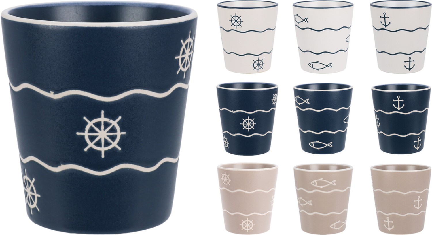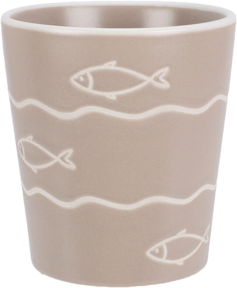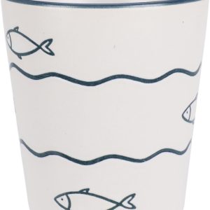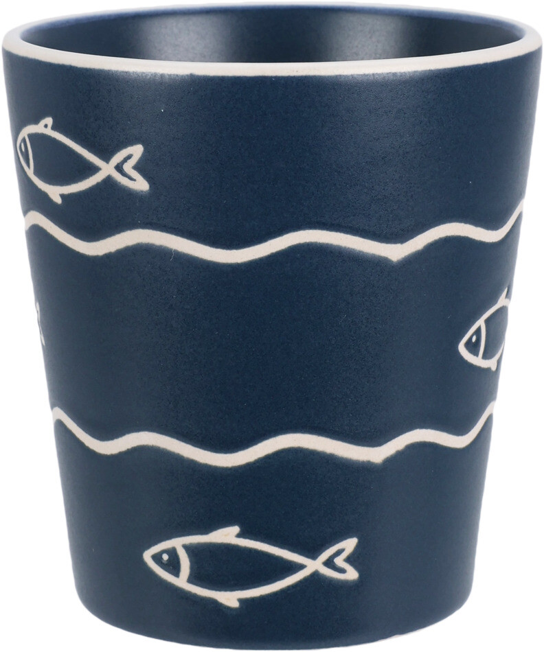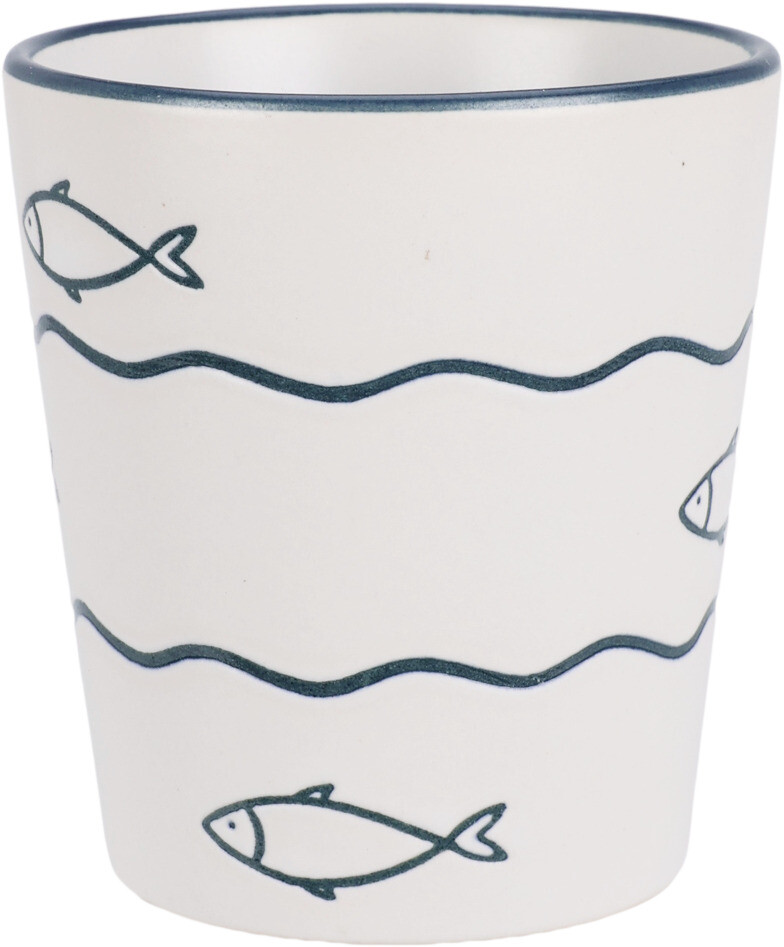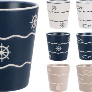 Deze stijlvolle aardewerken beker van 200 ml brengt de zee tot in je keuken. Het maritieme design met golven, ankers en schelpen geeft een rustige kustachtige uitstraling die perfect past bij elk interieur.