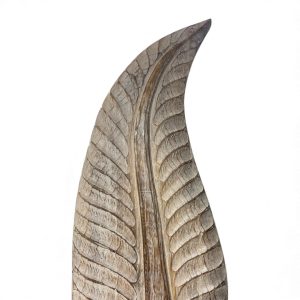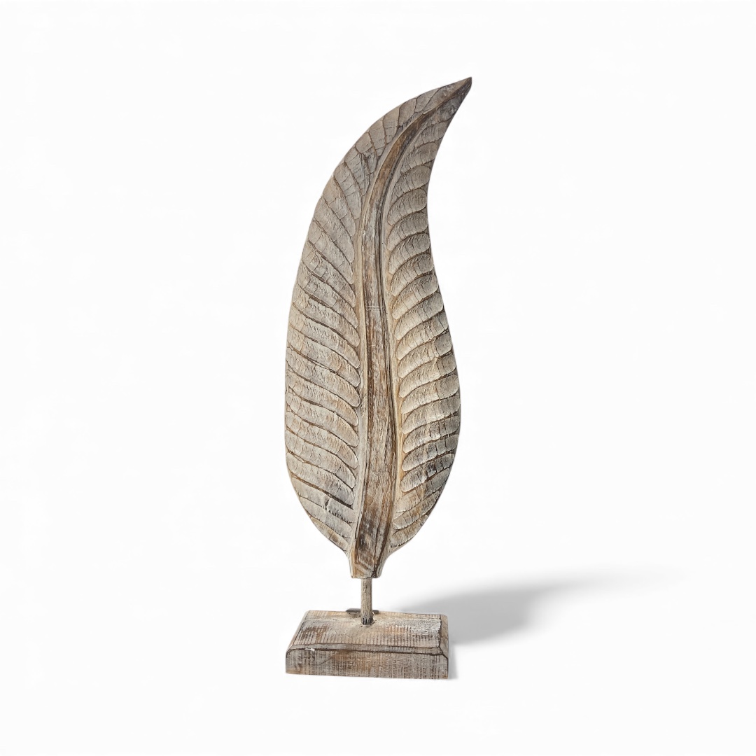 Decoratief blad op voetje in naturel hout. Het grote, handgemaakte blad is een opvallend en sfeervol accessoire voor elk interieur. Ideaal om op een dressoir, tafel of open kast te plaatsen. Met ca. 62×17?cm is dit formaat perfect als blikvanger en combineert het prachtig met andere formaten van dit product, voor een harmonieuze, warme uitstraling.