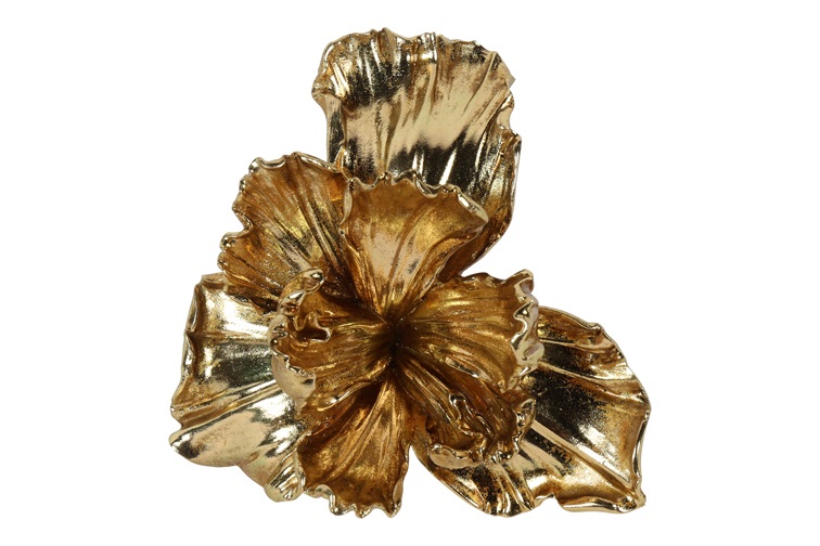 Met een formaat van ca. 16 × 13 × 12 cm is dit decoratieobject perfect voor plaatsing op een dressoir, salontafel, wandplank of in een open kast. De compacte maar opvallende vorm maakt het eenvoudig om de bloem te combineren met andere gouden accenten of neutrale woonaccessoires.