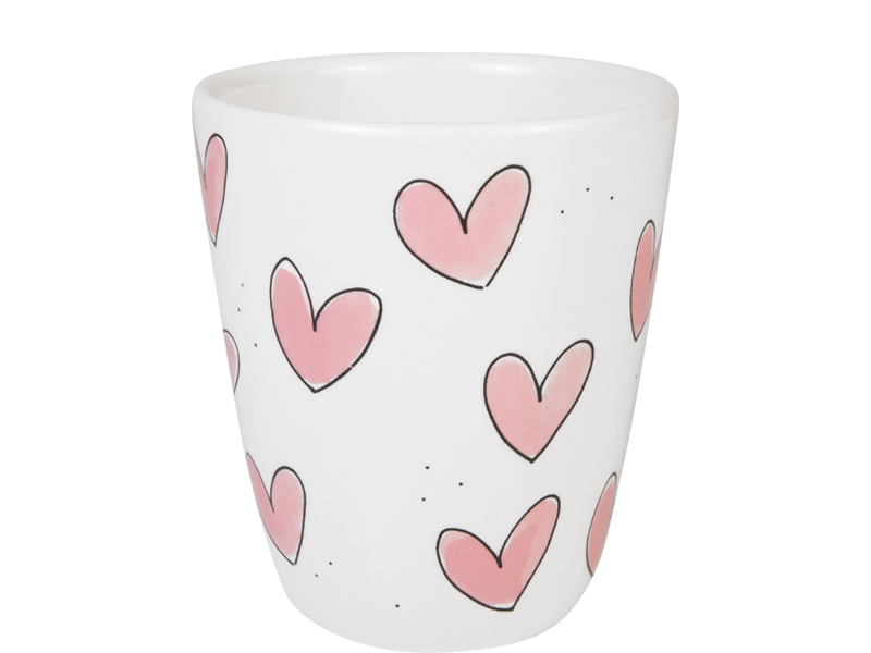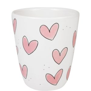 Deze 0,35L beker uit de Even Bijkletsen collectie is versierd met zachte roze hartjes en past perfect bij de Blond Amsterdam hartjesseries. Een fijne beker voor koffie, thee of warme choco tijdens een goed gesprek, precies waar even bijkletsen voor bedoeld is. Hij is vrolijk, luchtig en ideaal om te mixen & matchen met de gekleurde en rode hartjesvarianten. Zo maak je jouw servies kast in één klap extra gezellig. Je kunt de beker laten personaliseren in ons atelier met een naam of korte tekst. Perfect om cadeau te doen of om jouw eigen blond momentje nét even persoonlijker te maken. Gemaakt van keramiek. Geschikt voor magnetron (let op: materiaal kan wel heet worden & dagelijks gebruik. Voor langdurig kleurbehoud: handwas aanbevolen. Niet ovenbestendig.