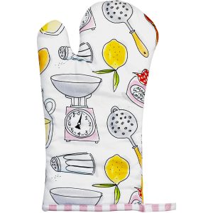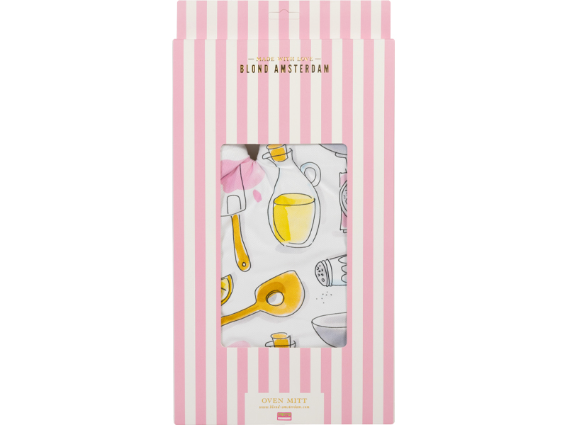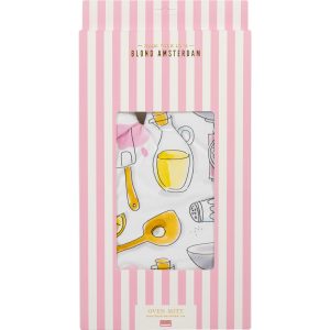 Warme taarten, hete pannen en… Met deze ovenwant uit de Even Bijkletsen collectie pak je alles stevig aan, letterlijk én figuurlijk. Het vrolijke design vol citroenen, spatels, maatbekers en andere keukenvrienden maakt elke bakbeurt een feestje om je vingers bij af te likken (maar wacht even tot het afgekoeld is). Gemaakt van stevig 100% katoen en afgewerkt met een zachte roze ruit. Praktisch, maar ook gewoon leuk om te zien. Hang ‘m in je keuken en hij kletst als het ware al met je mee. Combineer hem met de bijpassende theedoek en het tafelkleed uit de Even Bijkletsen collectie. Ontdek meer items van Blond Amsterdam.