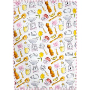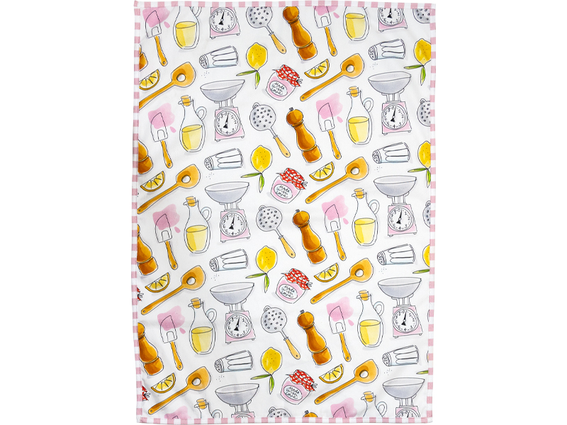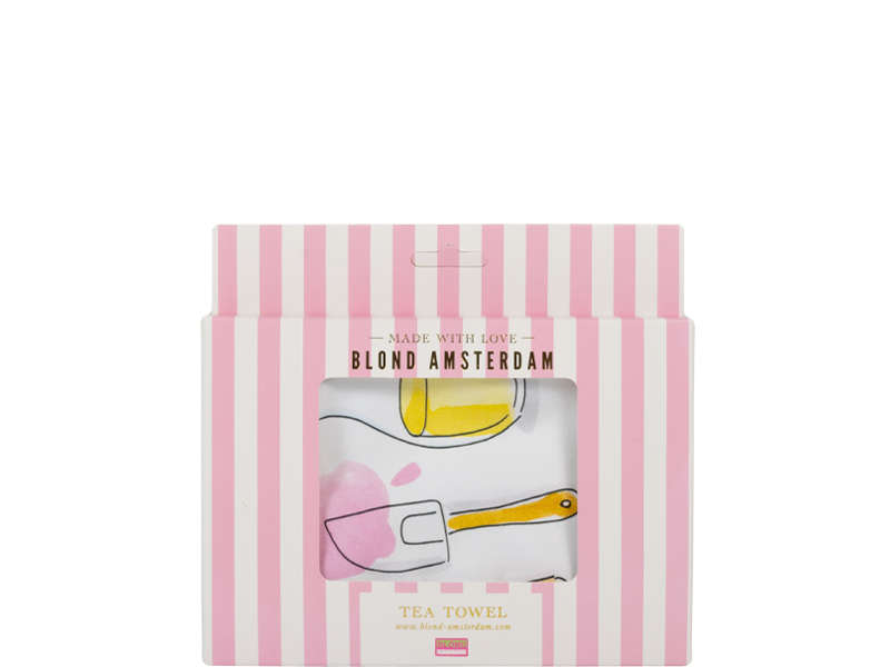 Kletsen, koken, drogen. Herhaal. Deze theedoek uit onze Even Bijkletsen collectie maakt zelfs het afdrogen gezellig. Met illustraties van keukenklassiekers als weegschalen, spatels en citroenen, alsof je keuken leeft en alles meedoet met het gesprek. Gemaakt van stevig 100% katoen, dus niet alleen leuk om naar te kijken, maar ook fijn in gebruik. Hang ’m op, gebruik ’m dagelijks, of geef ‘m cadeau aan die ene kok die alles in de pan (en niets op de vloer) krijgt. Combineer hem met de bijpassende ovenwanten of het tafelkleed. Ontdek meer items van Blond Amsterdam.