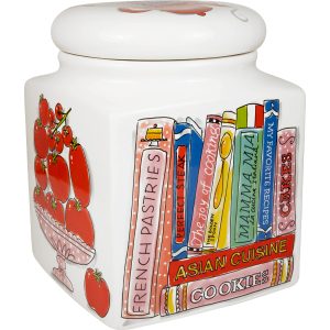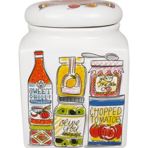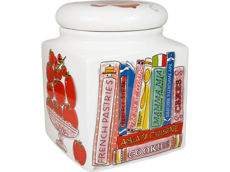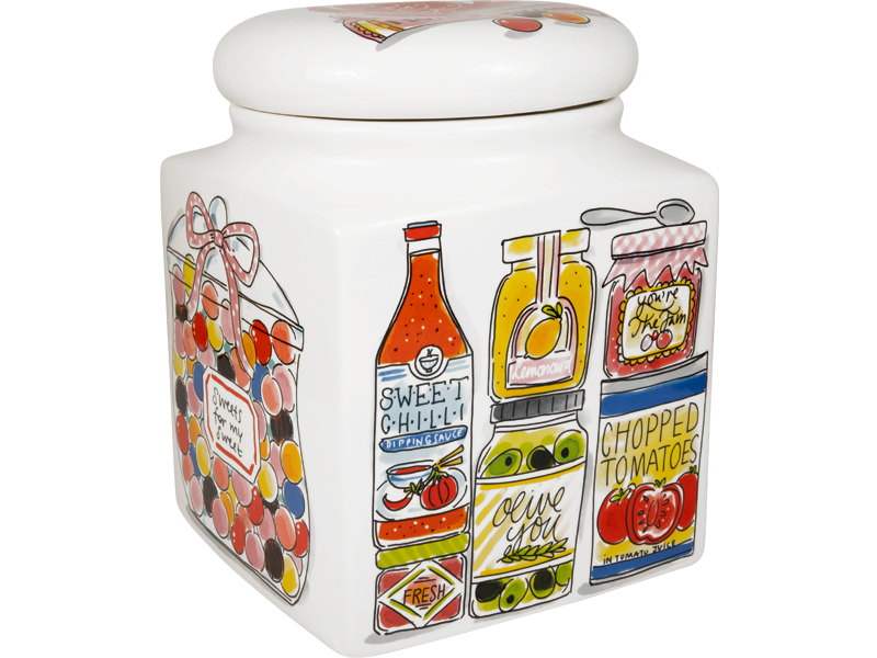 Voor iedereen die graag kookt, bakt en geniet: deze Blond Amsterdam voorraadpot uit de Blond Birthday Collectie is een ode aan de keuken. Het design zit vol kleurrijke illustraties van kookboeken, potjes en lekkers. Een feest van herkenning voor elke keukenliefhebber. Dankzij het royale formaat is deze vierkante voorraadpot perfect voor koekjes, pasta, rijst, suiker of andere droge producten. De pot is gemaakt van keramiek en voorzien van een bijpassend deksel, zodat alles netjes opgeborgen blijft. Tegelijkertijd is het een echte eyecatcher op het aanrecht of in een open kast, helemaal in de vrolijke Blond Amsterdam stijl. Praktisch opbergen en decoratief genieten gaan hier hand in hand. Ook leuk als cadeau voor iemand die zijn keuken het liefst altijd gezellig houdt.