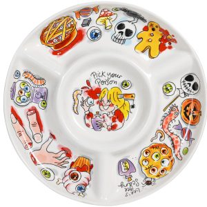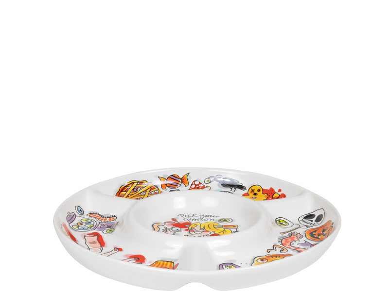 Deze snackschaal van 26cm uit de Halloween collectie van Blond Amsterdam is ideaal voor elke halloweenfan. De schaal staat vol vrolijk en spooky artwork op z’n Blonds. In het midden: de tekst Pick Your Poison, want keuze moet er zijn. Perfect voor filmavonden, Halloweenfeestjes of gewoon als statement piece op tafel. De schaal is gemaakt van stevig aardewerk en groot genoeg voor je hele snoepvoorraad (en dan nog wat). Combineer met de rest van de Halloween collectie en maak er een feest van dat tot diep in de nacht doorgaat. Ontdek meer items van Blond Amsterdam.