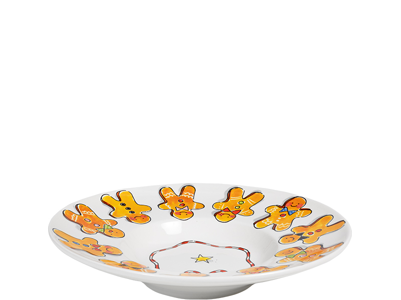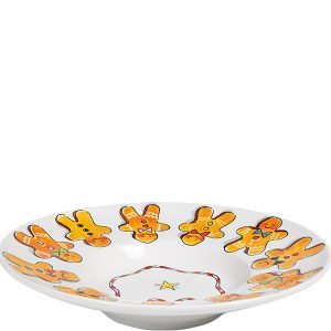 Op zoek naar een bord dat je kersttafel écht laat spreken? Dit 24cm pastabord uit de kerstcollectie van Blond Amsterdam zit vol vrolijke gingerbread mannetjes, elk met hun eigen kleurrijke strik. Ze dansen rond een roodwit lint met een ster in het midden, alsof ze weten dat ze de hoofdrol spelen tijdens jouw kerstdiner. Of je nu een winterse pasta serveert, een goedgevulde salade of een flinke schep stoof, dit bord maakt het compleet. En natuurlijk past ‘ie perfect bij alle andere kerstitems uit de Blond collectie. Mix & match erop los met de andere borden, schalen en glazen.