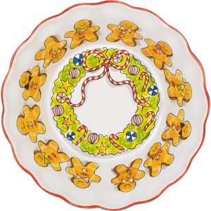 Kerst zonder gingerbread? Geen denken aan. Deze vrolijke schaal met golvende rand van 23cm zit vol met lachende koekmannetjes die je letterlijk vanaf de rand toelachen. De knalrode ruitrand, feestelijke illustraties en typische Blond touch maken de schaal ideaal voor bijvoorbeeld broodjes, kerstkoekjes of een kleurrijke salade. Je kan hem makkelijk mixen en matchen met andere Blond items uit de collectie zoals de cappuccinobeker, poke bowl of het pastabord.