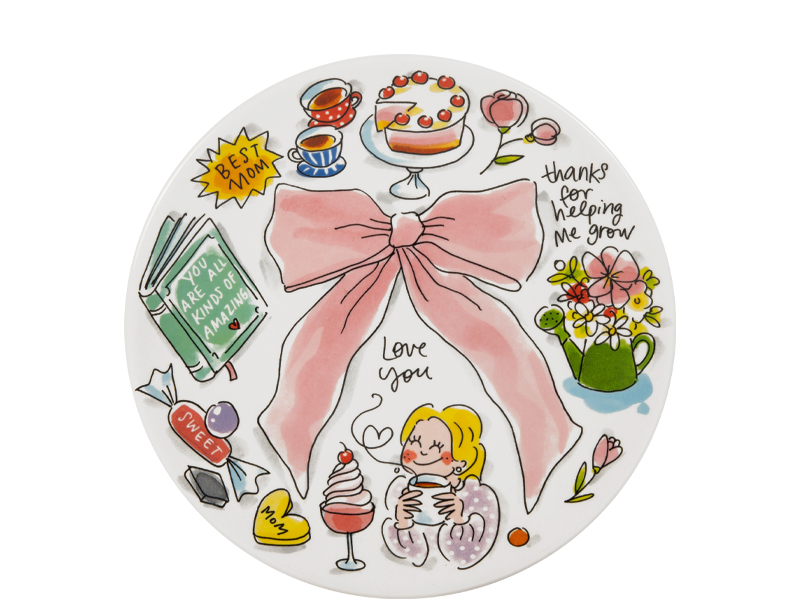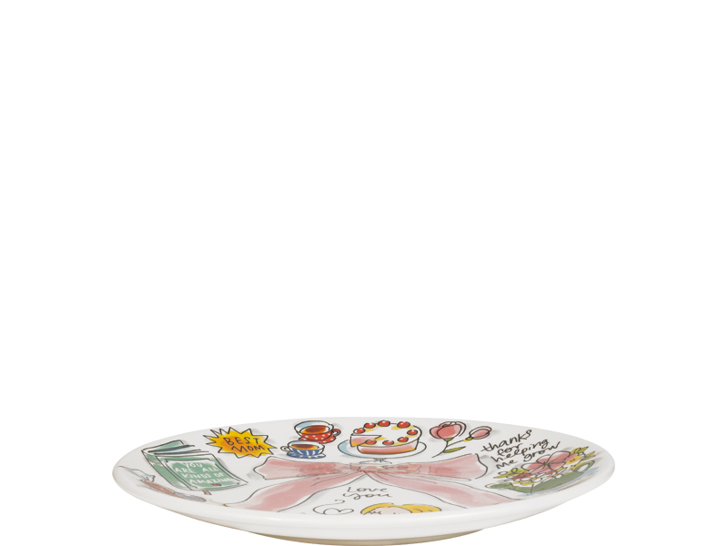 Begin Moederdag goed. Met taart. Of croissantjes. Of pannenkoeken. Dit ontbijtbord van 22 cm uit de Blond Amsterdam Moederdag collectie is gemaakt voor het ultieme ontbijtje op bed. De illustratie met roze strik maakt het extra feestelijk alsof je mama een cadeautje geeft dat ze elke dag kan gebruiken. Of je er nu een ontbijtje, taartje of lunch op serveert: dit bord zorgt gegarandeerd voor een glimlach. Een bord met een strik. Voor de liefste moeder. Laat dit product personaliseren met een naam of boodschap in ons atelier en maak er een echt persoonlijk cadeau van. Houd bij personalisatie rekening met een iets langere levertijd. Om de kwaliteit van de opdruk te behouden, raden we aan om de keramische producten met de hand af te wassen. Je kunt het servies in de magnetron gebruiken, maar het kan snel warm worden. Niet geschikt voor in de oven.