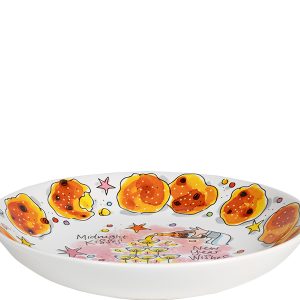 Oliebollen, bubbels en een stapel goede voornemens. Dit diepe bord van 23cm zegt alles wat we hopen voor een nieuw jaar. De illustratie van een bruisende champagnepiramide en de tekst ‘New Year Wishes’ en ‘Midnight Kisses’ maken dit bord ideaal voor oudejaarsavond, of de eerste brunch van het nieuwe jaar. Versierd met vrolijke Blond-illustraties en typisch Nederlandse oliebollen langs de rand, past dit bord perfect in de kerstcollectie van Blond Amsterdam. Combineer het met onze andere kerst- en feestitems voor een tafel vol kleur, knipoog en karakter. Want: geen feestje zonder een beetje Blond.