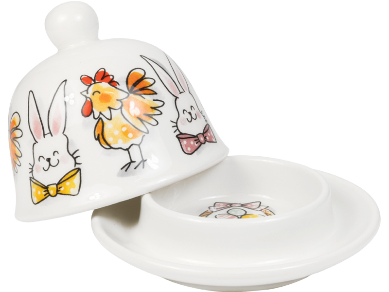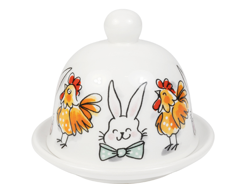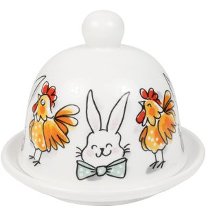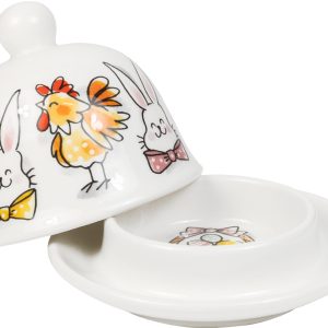 De Botervloot rond 12 cm Pasen Paashazen & Paaskippen van Blond Amsterdam brengt extra gezelligheid op tafel tijdens Pasen. De handgetekende paashazen en paaskippen staan zij aan zij rondom de botervloot. Een vrolijk duo dat perfect past bij de herkenbare Blond-stijl. De botervloot is gemaakt van keramiek en bestaat uit een schaaltje met bijpassende deksel. Ideaal voor het serveren van boter tijdens het paasontbijt of de paasbrunch. Dankzij het ronde formaat staat deze botervloot mooi op tafel en laat hij zich makkelijk combineren met andere items uit de Blond Amsterdam Pasen collectie. Ook geschikt als paas cadeau of als vrolijke aanvulling op het paas servies van Blond Amsterdam. Met deze botervloot krijgt zelfs de boter een ereplaats.