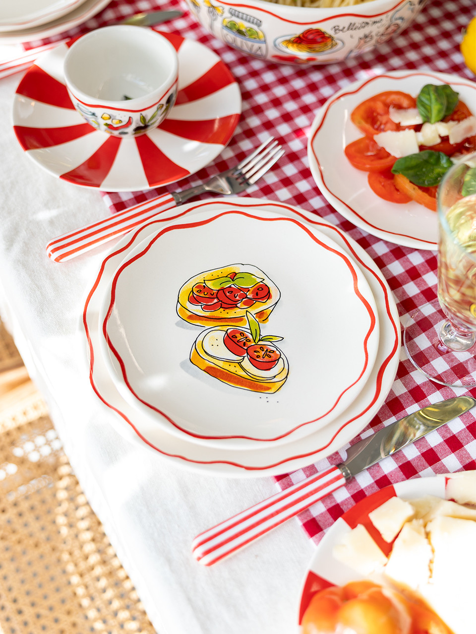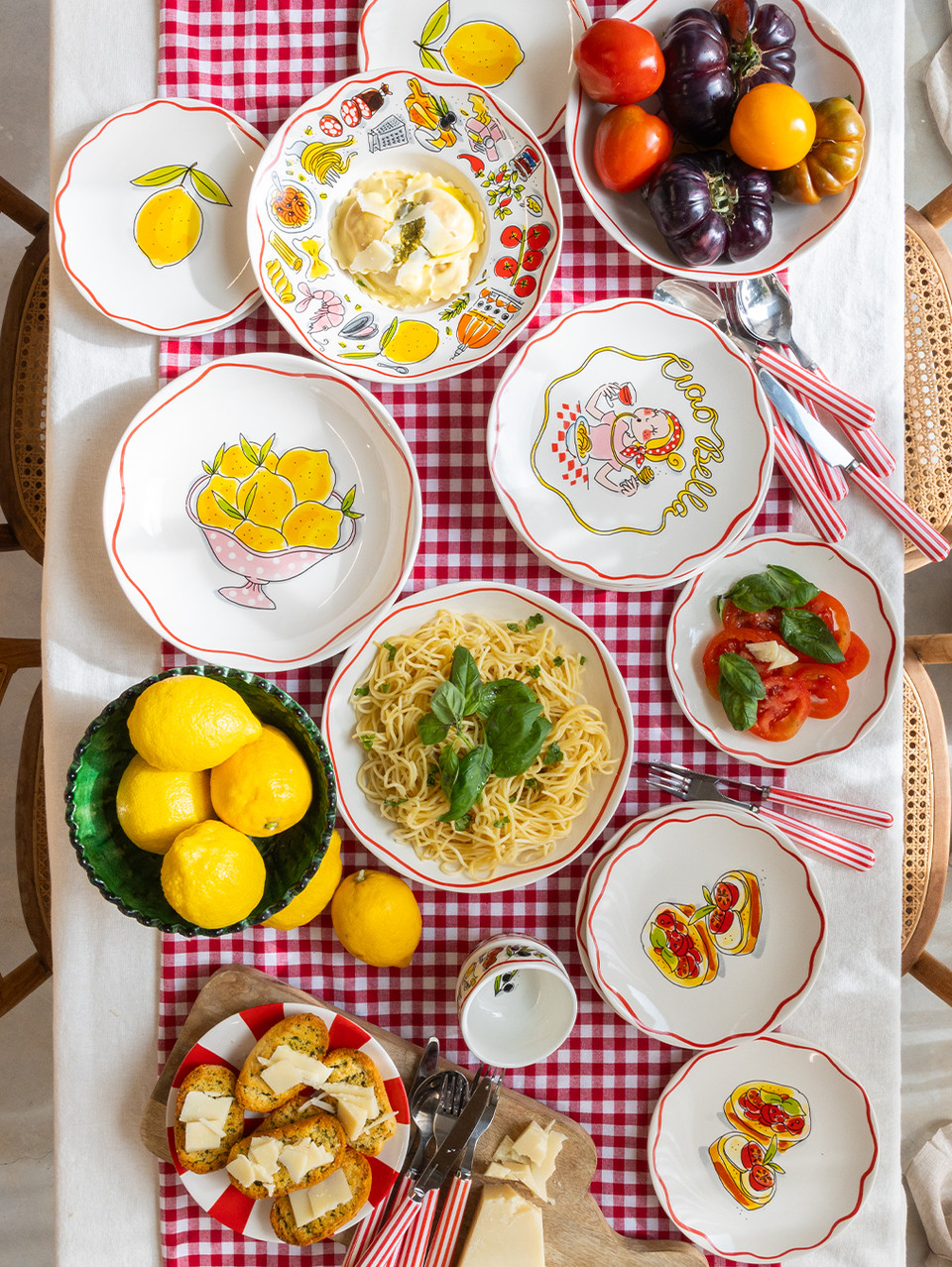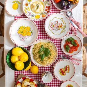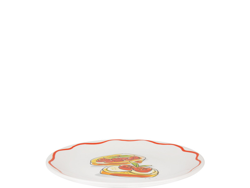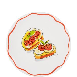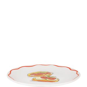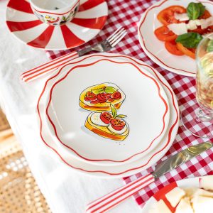 Een knapperige bruschetta, een scheutje olijfolie en een zonnige tafel, dat is precies het gevoel van dit 18 cm bord uit de Blond Amsterdam Pasta collectie. De illustratie met Italiaanse lekkernijen brengt meteen een vleugje Italië naar je keuken. Dit kleine bord van 18 cm is ideaal voor bruschetta, antipasti, een klein gerecht of een dessert. De speelse details en warme kleuren maken het bord een echte blikvanger op tafel. Perfect voor lange Italiaanse diners met vrienden, een gezellige borrel of een bordje vol kleine hapjes. Met dit bord proef je bijna de sfeer van een Italiaanse trattoria. Laat dit product personaliseren met een naam of boodschap in ons atelier en maak er een echt persoonlijk cadeau van. Houd bij personalisatie rekening met een iets langere levertijd. Om de kwaliteit van de opdruk te behouden, raden we aan om de keramische producten met de hand af te wassen. Je kunt het servies in de magnetron gebruiken, maar het kan snel warm worden. Niet geschikt voor in de oven.