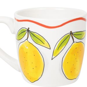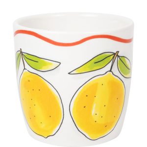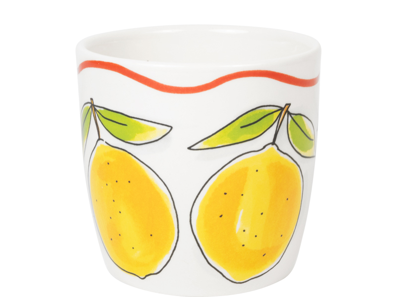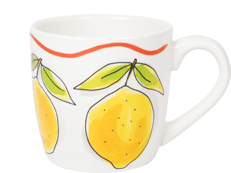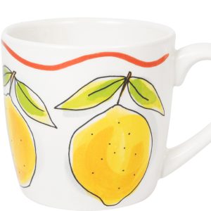 Een cappuccino smaakt nóg beter uit deze grote mok uit de Blond Amsterdam Pasta collectie. De frisse citroenen geven de mok een zonnige en Italiaanse uitstraling. Perfect voor een ontspannen koffiemoment. Met een inhoud van 0,5 liter is deze mok ideaal voor cappuccino, latte, thee of een warme chocolademelk. Groot, gezellig en heerlijk comfortabel om vast te houden. De vrolijke citroenen brengen meteen een zomerse sfeer in huis. Combineer de mok met het andere servies uit de Pasta collectie en geniet van een klein Italiaans koffiemoment bij je thuis. Laat dit product personaliseren met een naam of boodschap in ons atelier en maak er een echt persoonlijk cadeau van. Houd bij personalisatie rekening met een iets langere levertijd. Om de kwaliteit van de opdruk te behouden, raden we aan om de keramische producten met de hand af te wassen. Je kunt het servies in de magnetron gebruiken, maar het kan snel warm worden. Niet geschikt voor in de oven.