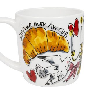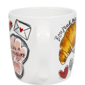 Bonjour Madame! Deze romantische 0.35L beker uit de Valentijncollectie is gevuld met alles wat liefde zo leuk maakt: Franse clichés, kusjes, croissants en dat altijd-goede “je ne sais quoi”. Perfect voor ontbijt op bed met je geliefde mét heel veel kruimels, uiteraard. De vrolijke illustraties en Franse teksten brengen meteen l’amour toujours in huis. Extra leuk: je kunt de beker laten personaliseren, waardoor hij hét ideale cadeau wordt voor jouw ma chérie. Gemaakt van hoogwaardig aardewerk en geschikt voor magnetron, maar let op: met materiaal kan heet worden. Voor het mooiste behoud van kleur en illustratie adviseren we om met de hand af te wassen.