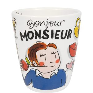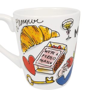 Bonjour Monsieur! Deze romantische 0.35L Valentijnbeker brengt je meteen in Franse sferen: croissants, brieven, kusjes, duiven en een flinke dosis l’amour toujours. Ideaal voor ontbijt op bed mét kruimels, want dat hoort bij echte romantiek. De vrolijke illustraties en Franse teksten maken dit dé beker voor jouw mon amour. En extra leuk: je kunt hem laten personaliseren, waardoor het hét perfecte, persoonlijke cadeau wordt. Gemaakt van hoogwaardig aardewerk en magnetronbestendig (maar let op: het materiaal kan warm worden). Geschikt voor de vaatwasser, al adviseren we handwas om de kleuren en print nóg langer mooi te houden.
