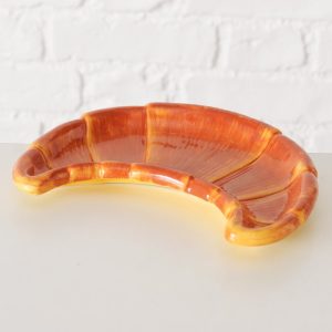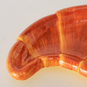 Bord croissant is een uniekk bord van keramiek in de vorm van een croissant. De warme bruintinten en glanzende afwerking geven het bord een realistische en speelse uitstraling. Dankzij het handgemaakte karakter heeft ieder exemplaar een eigen, ambachtelijke uitstraling.