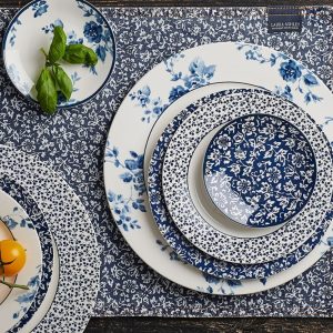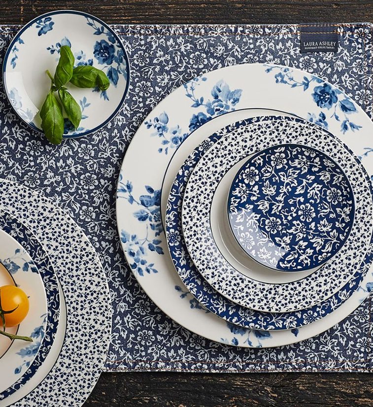 De collecties van Laura Ashley Tableware is een prachtige aanwinst op je tafel. Laura Ashley, een van ‘s werelds meest geliefde fashion en interior designers, is zelf ooit klein begonnen. Begin jaren 50, na het zien van een expositie in het Victoria & Albert Museum, raakte ze geïnspireerd om zelf printjes te gaan maken voor patchwork. Vanaf het begin aan de keukentafel groeide het bedrijf enorm en in de jaren 80 had vestigingen over de hele wereld. Die allereerste printjes zijn de inspiratie geweest voor de ontwikkeling van The Blueprint Collectables. Een verzameling van blauw-wit op porselein gecombineerd met verwassen jeans.