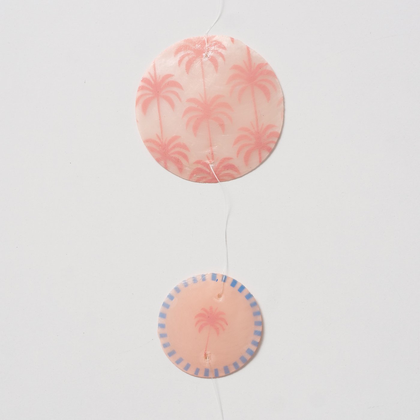 De capiz slinger Nizza is een prachtige, handgemaakte decoratie met ronde capiz schijfjes die een subtiele glans geven wanneer het licht erop valt. De slinger is verkrijgbaar in twee varianten en brengt een zomerse, natuurlijke sfeer in huis. Perfect voor een wand, kast, deur, of als decoratie bij feestjes en styling.