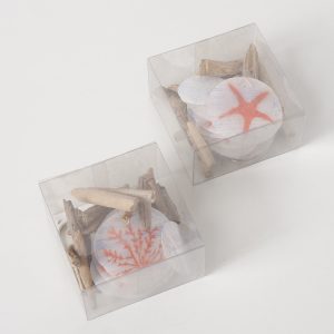 De guirlande is verkrijgbaar in twee varianten met subtiele verschillen in kleur en schelpvorm.