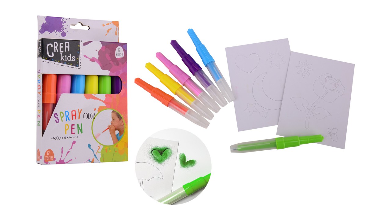 De Crea Kids air marker set bestaat uit 6 kleurrijke air markers, speciaal ontworpen voor creatief tekenplezier bij kinderen. Met deze markers kunnen kinderen spelenderwijs experimenteren met kleuren en patronen door te blazen op de stiften, wat zorgt voor verrassende effecten op papier.