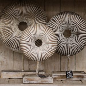 Mooie houten cirkel met spiraal effect op houten voet. Verkrijgbaar in 3 maten. Combineer voor een extra leuk effect! Made in Indonesia with love!