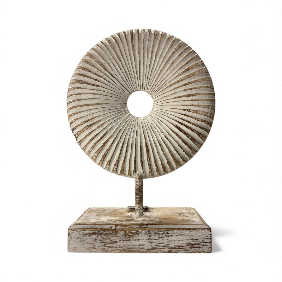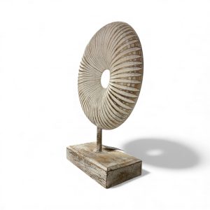 Decoratieve donut op voet uit de Lumina-collectie in naturel/wit, maat M. Dit handgemaakte decoratiestuk is iets groter en valt daardoor mooi op als centraal accent op een dressoir, tafel of open kast. Met ca. 33×19?cm combineert het elegant met andere accessoires of met de andere formaten van dit product en voegt het een moderne en natuurlijke sfeer toe aan je interieur.