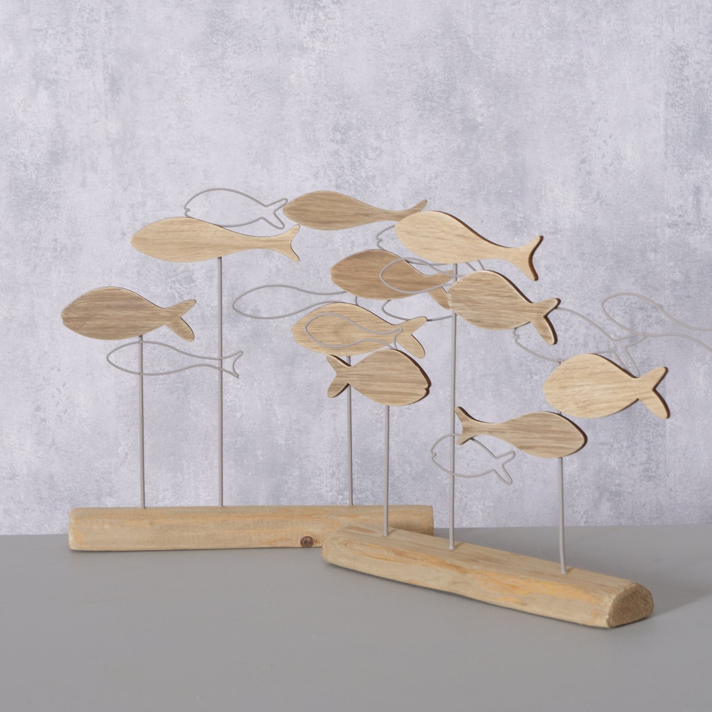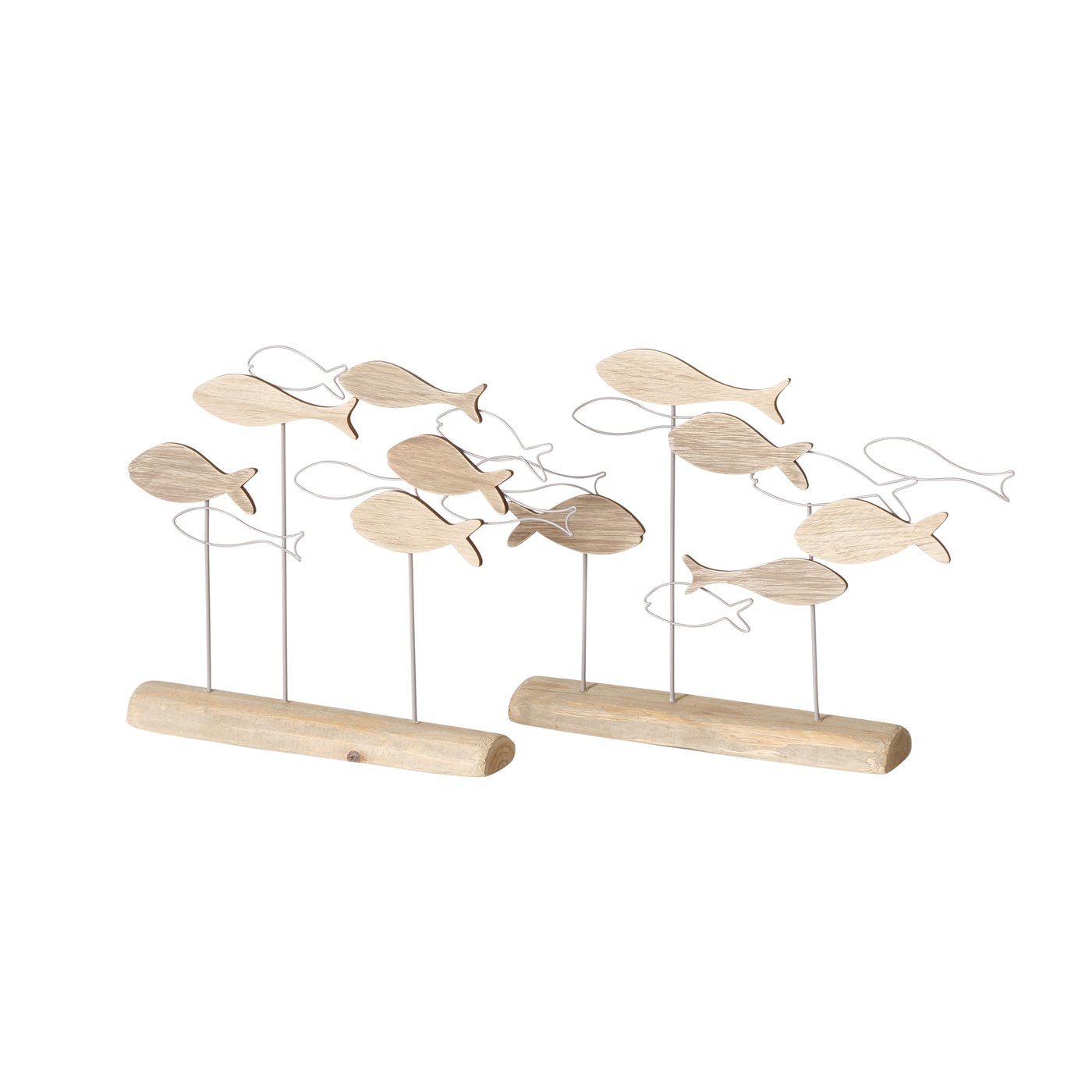Breng een frisse, maritieme sfeer in huis met dit decoratieve object “Filua”. Het speelse ontwerp met houten visjes op metalen staafjes geeft het geheel een luchtige, natuurlijke uitstraling, perfect voor een vensterbank, dressoir, wandplank of vakantiehuisje in kuststijl.