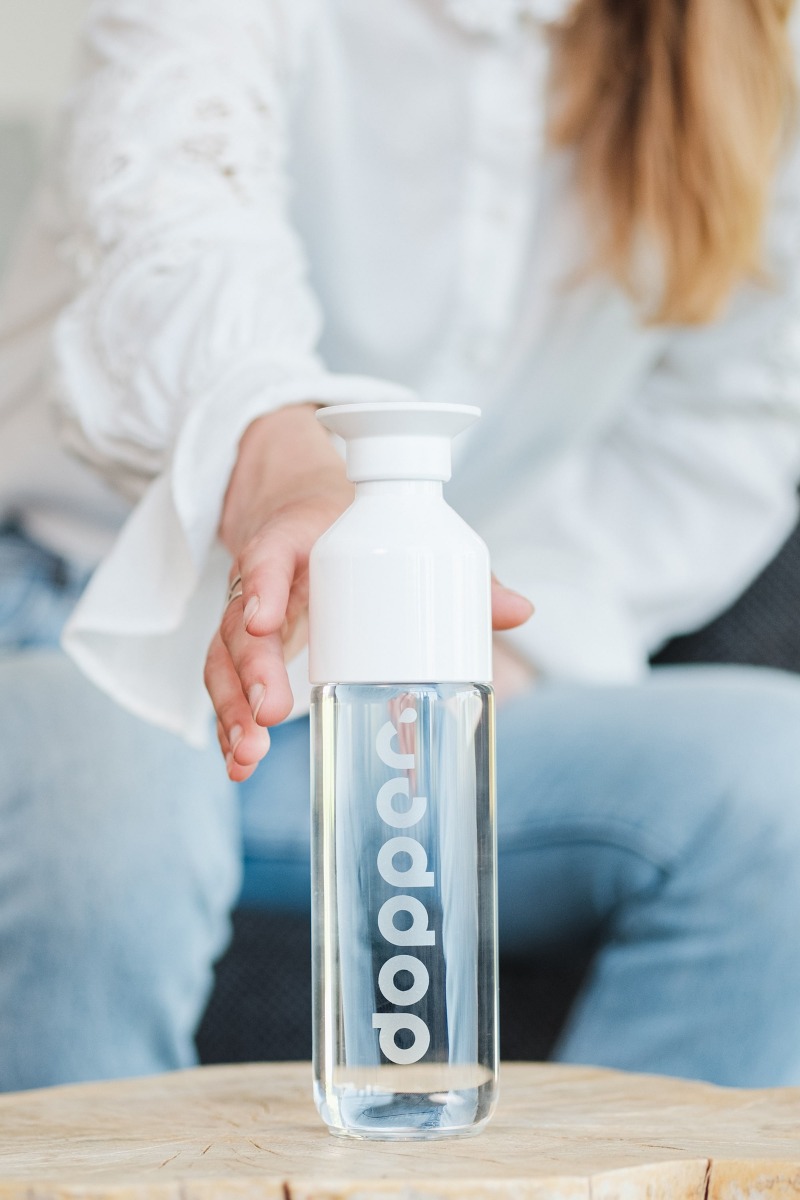 Dopper Glass waterfles 400ml. Waarom Glass? Glashelder water is iets om te koesteren, daar zijn ze bij Dopper van overtuigd. Zeewater, kraanwater; het is pure rijkdom. Daarom hebben ze een kristalheldere glazen fles ontwikkeld die hun gedachte weerspiegelt. Een fles met een luxe uitstraling, klaar om een statement te maken. Niet alleen op je bureau, maar op wereldniveau.