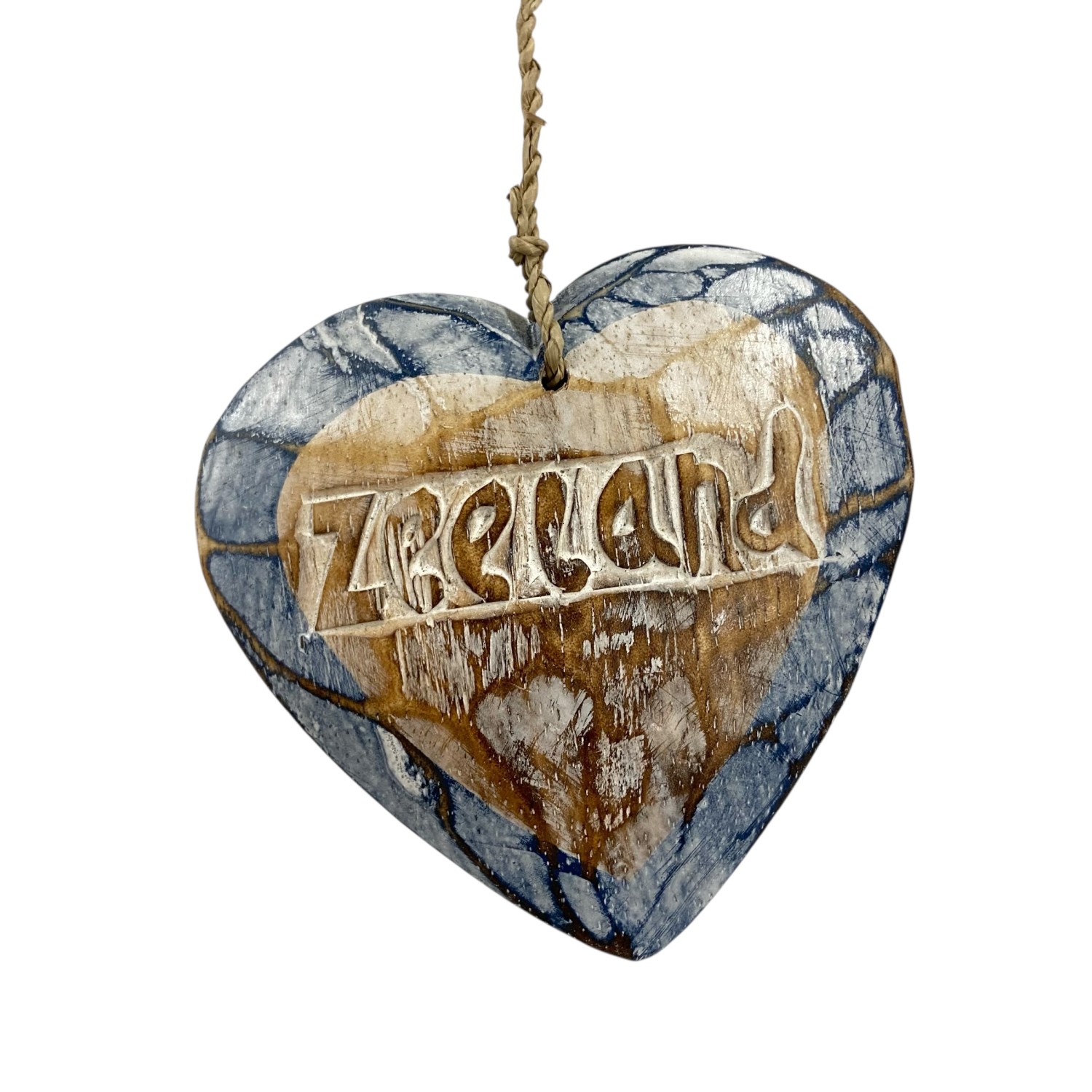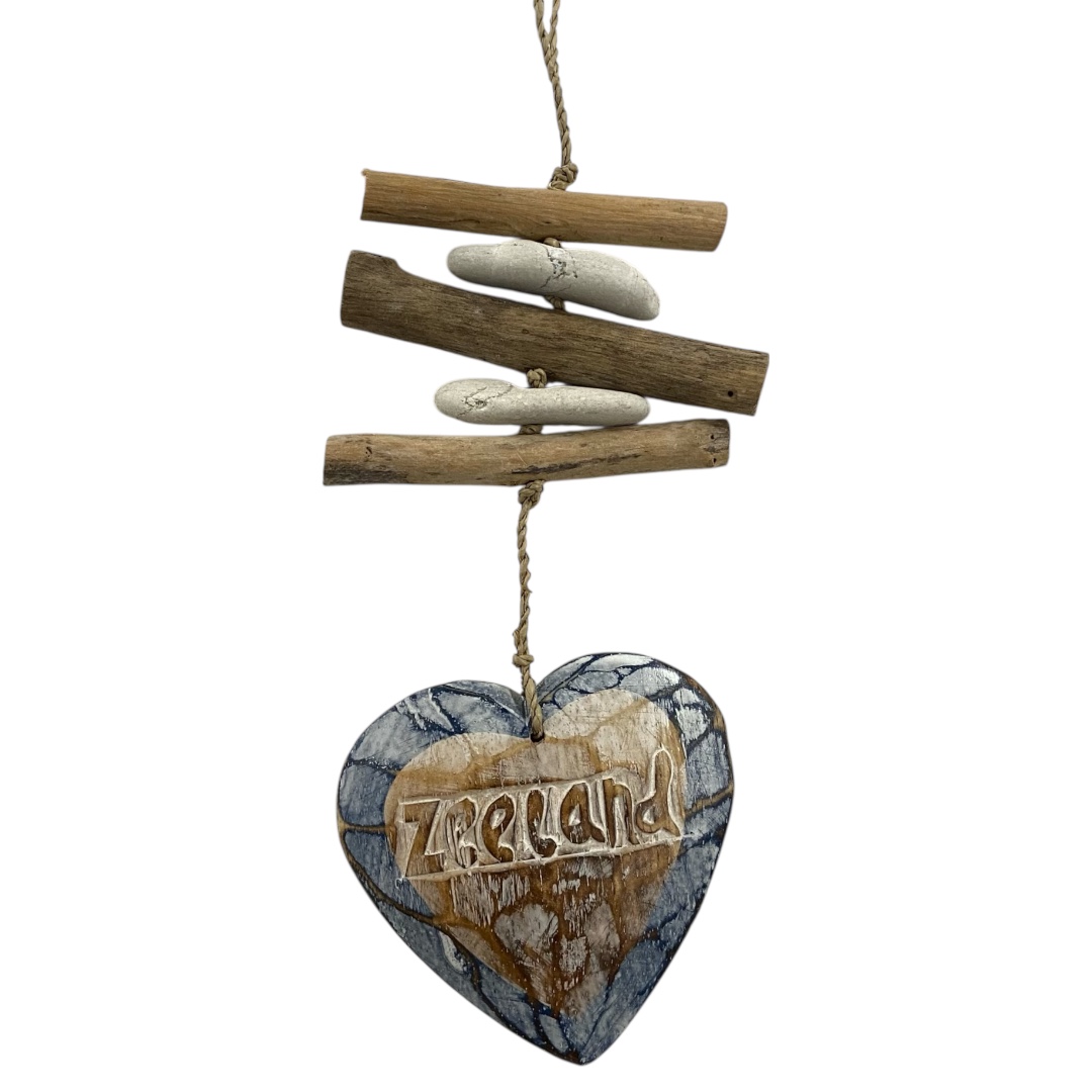 Drijfhouthanger met hart en een blauwe rand, een sfeervolle accessoire die perfect past binnen een beach-, nautisch of coastal interieur. De combinatie van natuurlijk drijfhout met de blauwe kleur geeft een frisse, maritieme uitstraling. Leuk aan de muur, deur of in een zomers hoekje in huis.