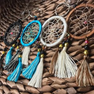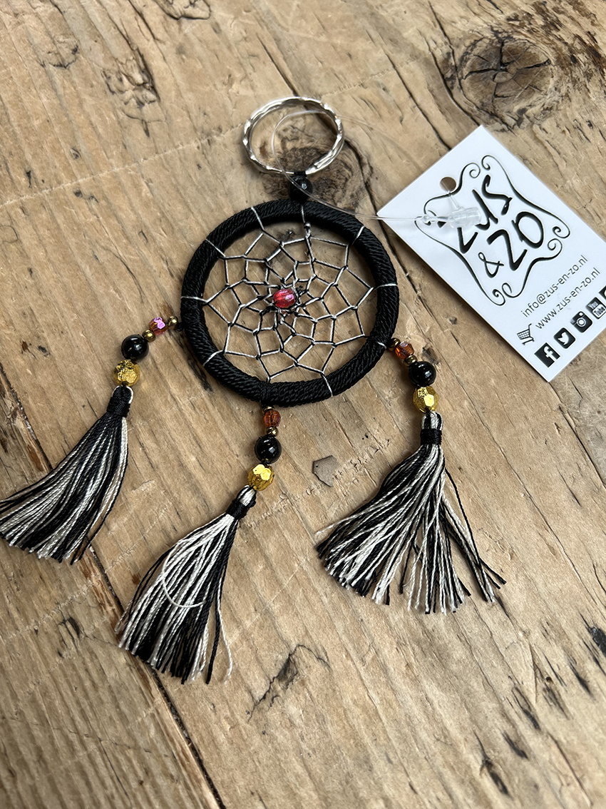 Deze leuke sleutelhanger met zwarte dromenvanger is een echte eyecatcher! Hij is leuk, sfeervol en hip. Erg leuk om cadeau te geven, maar zeker ook om cadeau te krijgen. Door het haakje past deze sleutelhanger met dromenvanger aan elke sleutelbos!