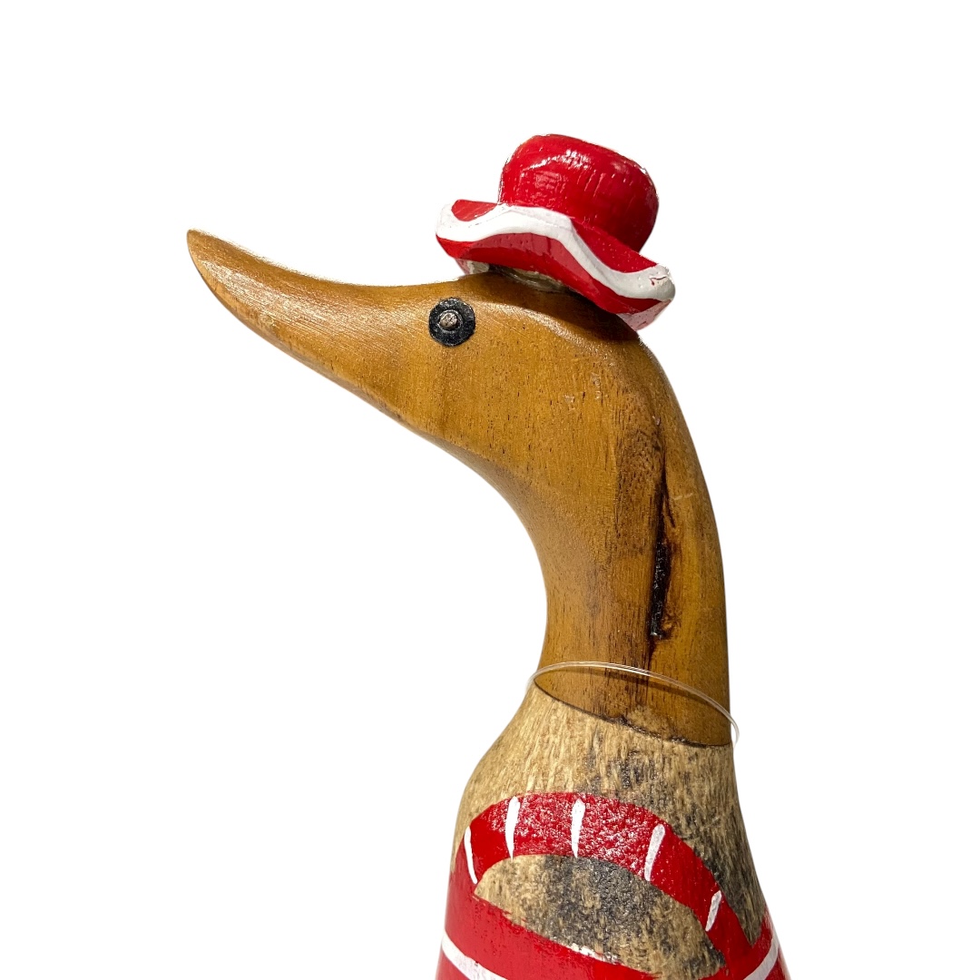 Elke eend wordt met de hand gemaakt door lokale ambachtslieden in Indonesië, waardoor geen enkel exemplaar precies hetzelfde is.