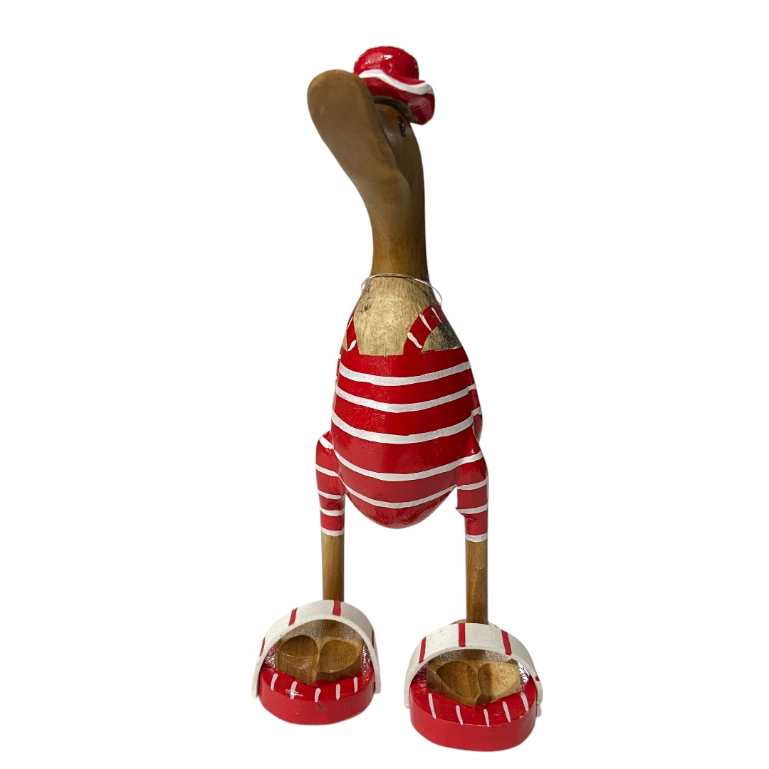 Deze vrolijke houten eend “Flipflop” brengt direct een zomers tintje in huis.