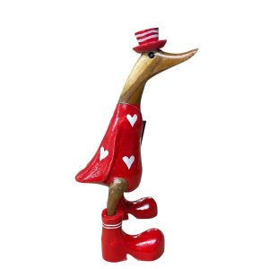 Het natuurlijke hout en de speelse details geven de eend een warme, karaktervolle uitstraling.