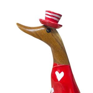 Breng een vleugje ambacht en vrolijkheid in huis met deze handgemaakte houten eend uit Indonesië.