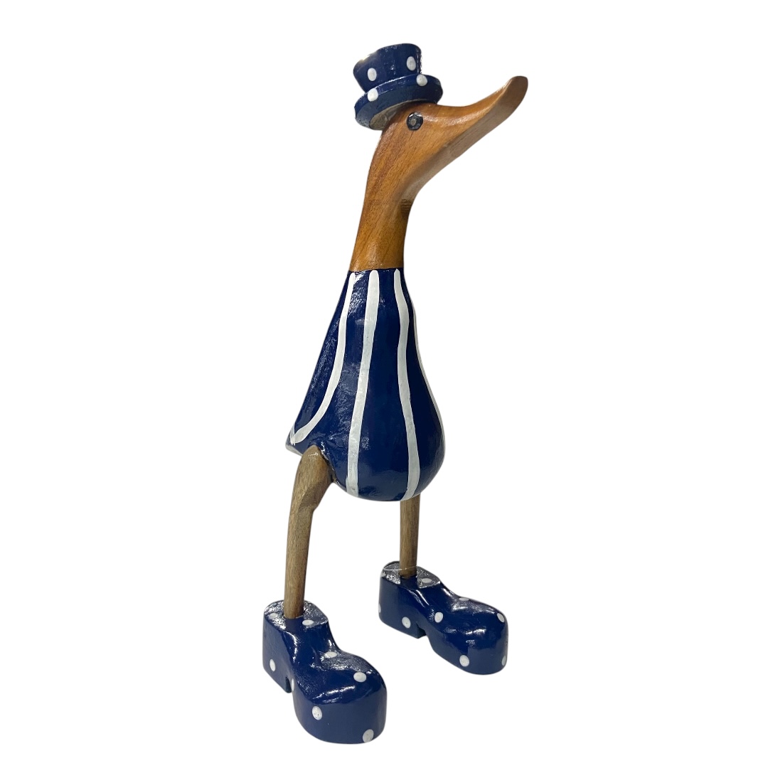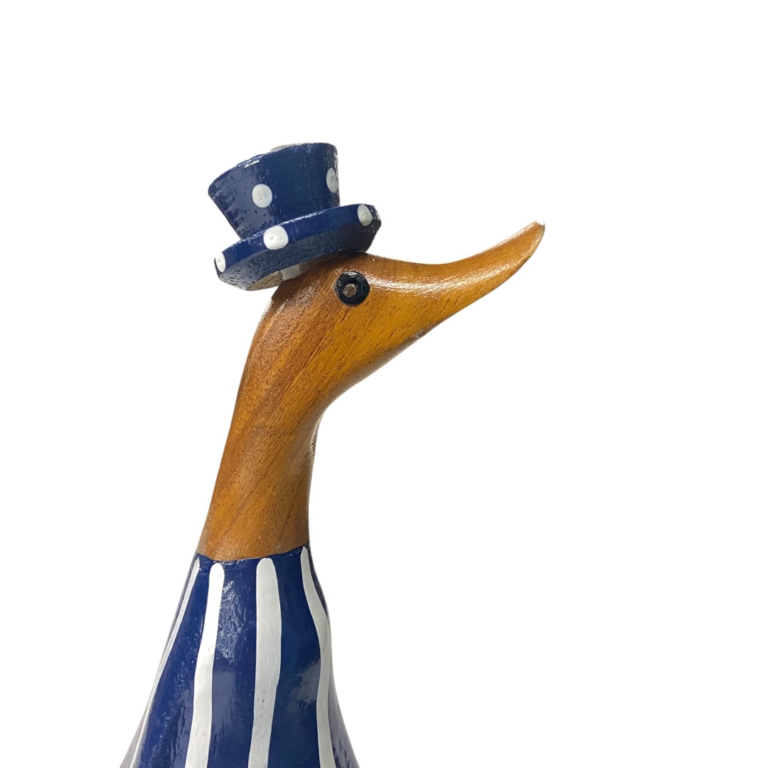 Deze stijlvolle houten eend uit Indonesië straalt karakter en vakmanschap uit.