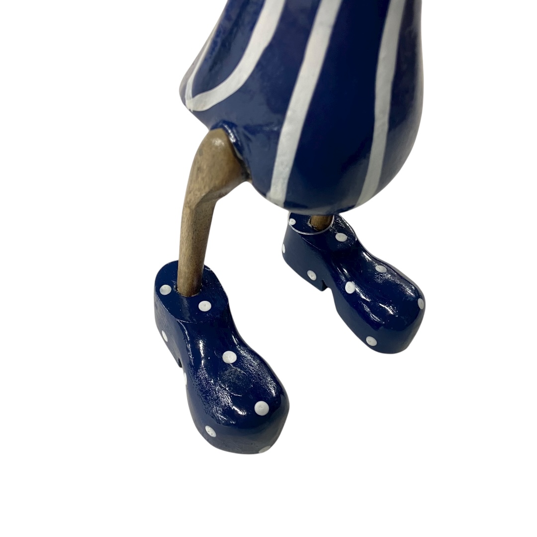Met haar marineblauwe outfit en speelse strepen brengt ze een zomerse, maritieme sfeer in huis.