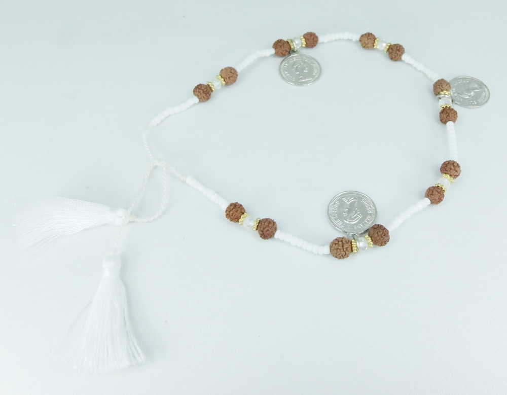 Enkelbandje met kwastjes, rondom kraaltjes en drie zilveren muntjes voor geluk! Het bandje heeft een schuifknoop en is daardoor verstelbaar tussen de 25 en maximaal 30cm. Je kunt zelf even met een centimeter meten of het om je enkel zou passen. Het zou tevens om een kinder enkel kunnen passen. Het is niet erg als het enkelbandje deels op de bovenkant van je voet rust, maar het moet wel lekker zitten natuurlijk. Het enkelbandje is verkrijgbaar in wit, turquoise en zwart. Klik hier om meerdere enkelbandjes te zien.