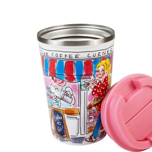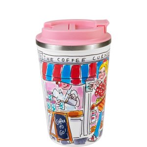 Neem je koffiemoment overal mee naartoe met deze Blond Amsterdam To Go beker uit de Even Bijkletsen collectie. De speelse coffee corner illustraties brengen de gezelligheid van je favoriete koffietentje naar onderweg, kantoor of collegezaal.