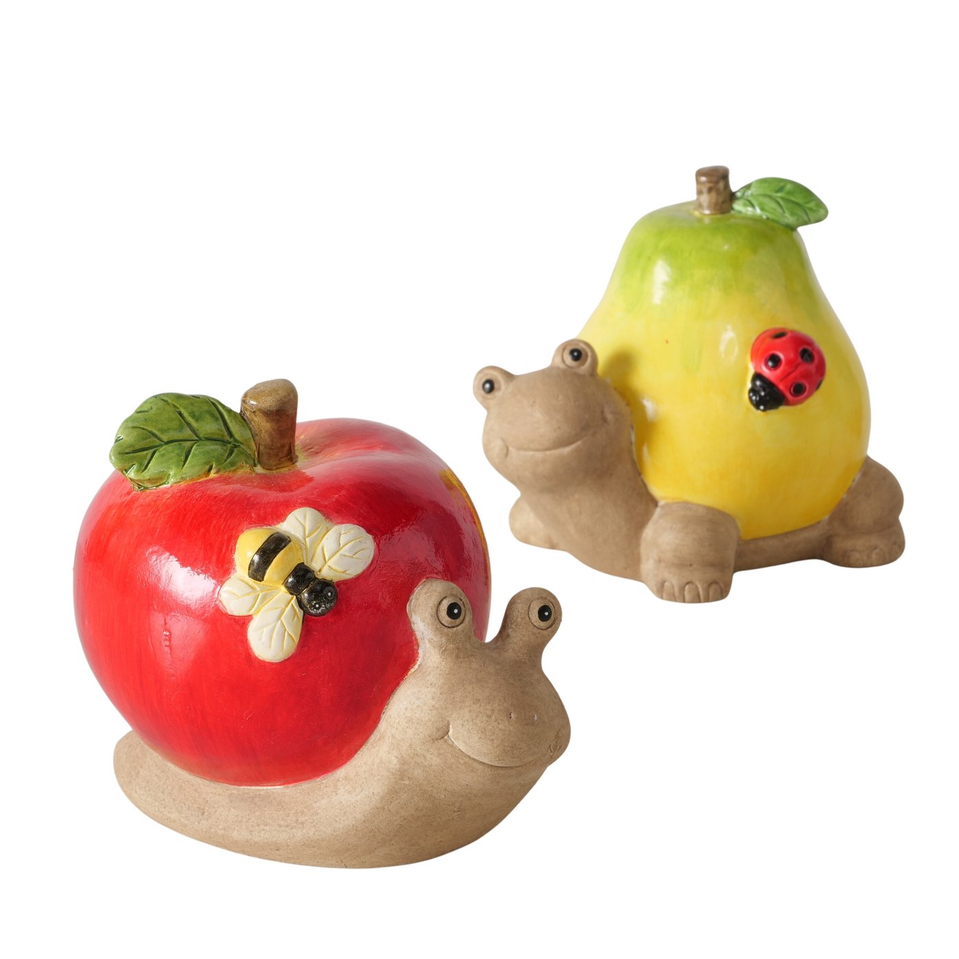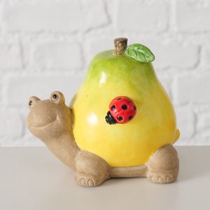 Het decoratieve beeldje Fruity zorgt direct voor een speelse en kleurrijke toevoeging aan jouw interieur. De beeldjes zijn gemaakt van handbeschilderd keramiek en verkrijgbaar in twee varianten: een slak met een rode appel of een schildpad met een gele peer. Beide varianten hebben een vrolijk karakter en passen leuk in de keuken, woonkamer of op een stijlplankje.