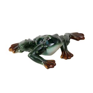 De Figurine Frido is een handgemaakte keramische kikkerfiguur van hoogwaardig porselein met een glanzende groene afwerking. Met een compacte vorm van ca. L20 × B13 × H6,5 cm is dit beeldje perfect voor op een plank, vensterbank of als speelse decoratie op tafel. Het enkelkleurige, glanzende ontwerp geeft een frisse, levendige uitstraling en voegt een vrolijk accent toe aan elk interieur of tuindecor.