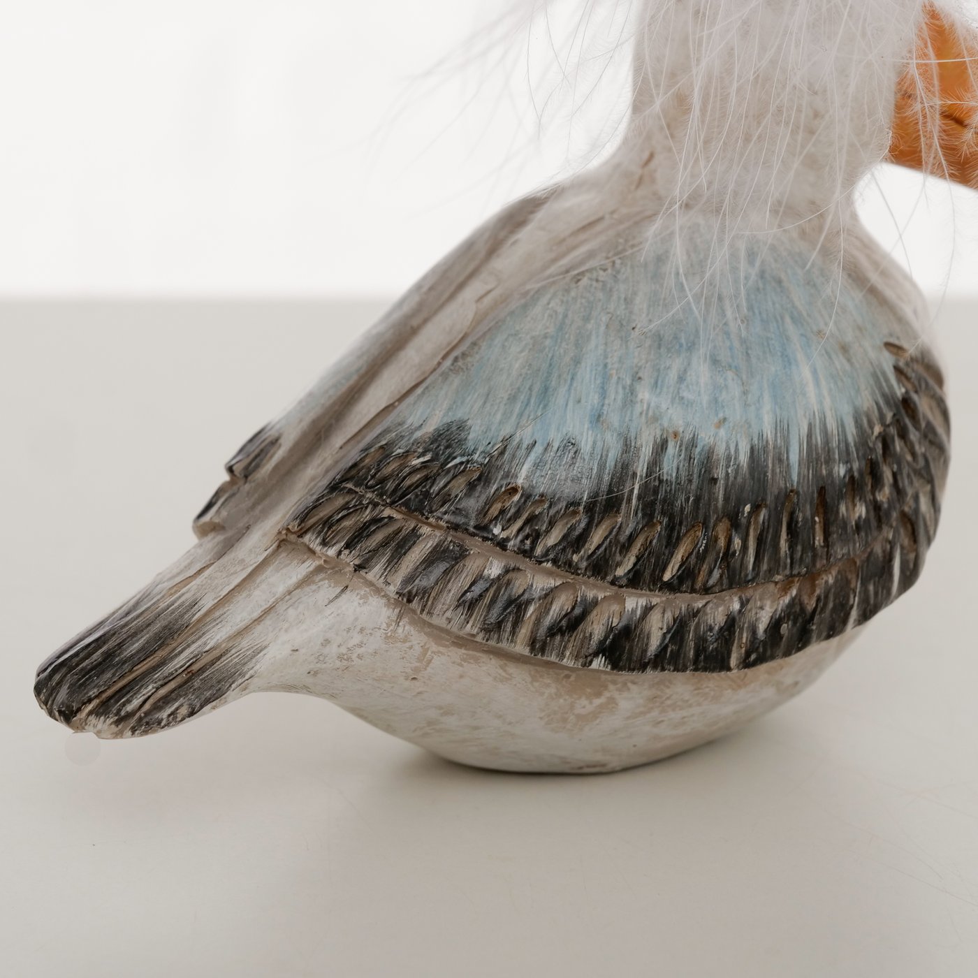 Het beeld is gemaakt van polyresin en polyester en met de hand beschilderd. De zwart-witte kleuren van de meeuw in combinatie met de opvallende snavel en pluizige kop zorgen voor een karaktervol decoratieobject.