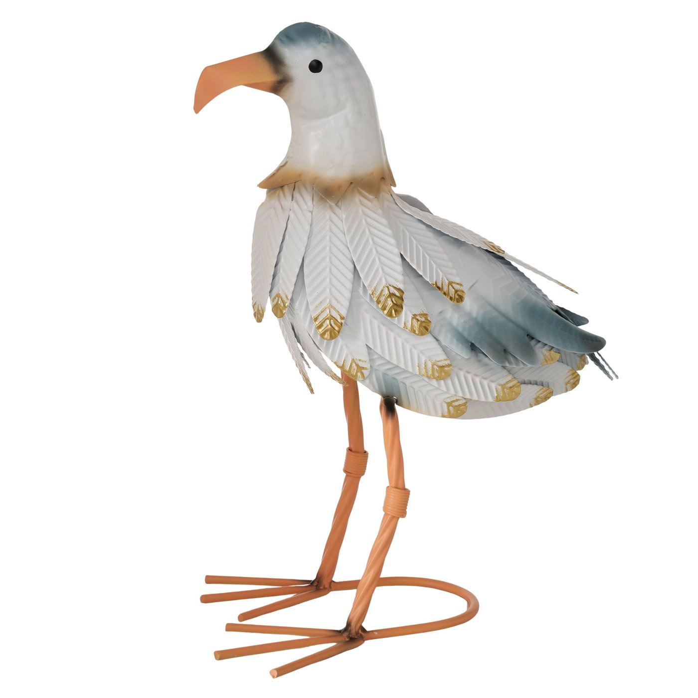 Figuur Suri L is een decoratieve zeemeeuw met een speelse en karaktervolle uitstraling. Het beeld is vervaardigd van metaal en heeft een handgemaakte look met subtiele kleuraccenten en verfijnde details in de veren.