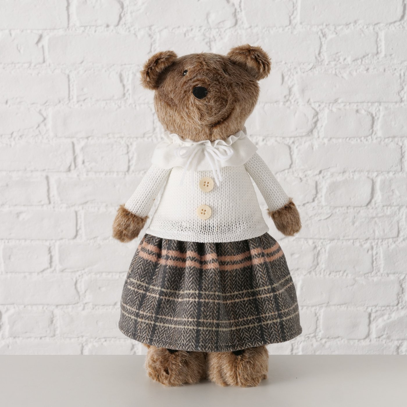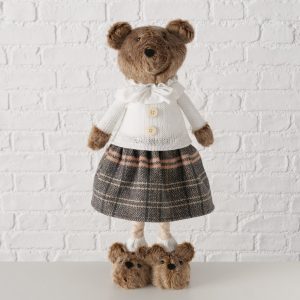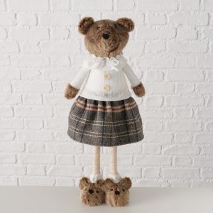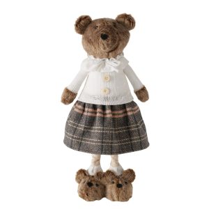 Teddie is niet zomaar een teddybeer, zij is het stralende middelpunt van jouw kerstdecoratie. In haar feestelijke geruite rokje en wollige truitje is ze helemaal in berenstijl klaar voor het kerstdiner.