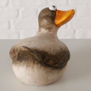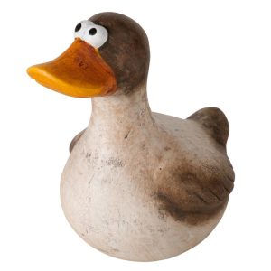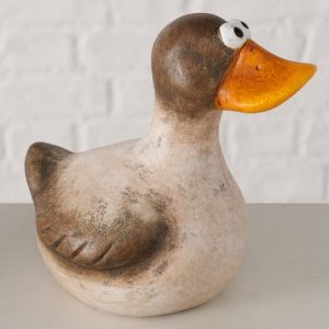 Figuur Timpy is een decoratief beeld van een eend met een speelse en landelijke uitstraling. De zachte kleuren en handgeschilderde details geven het beeld een charmant en karaktervol uiterlijk.