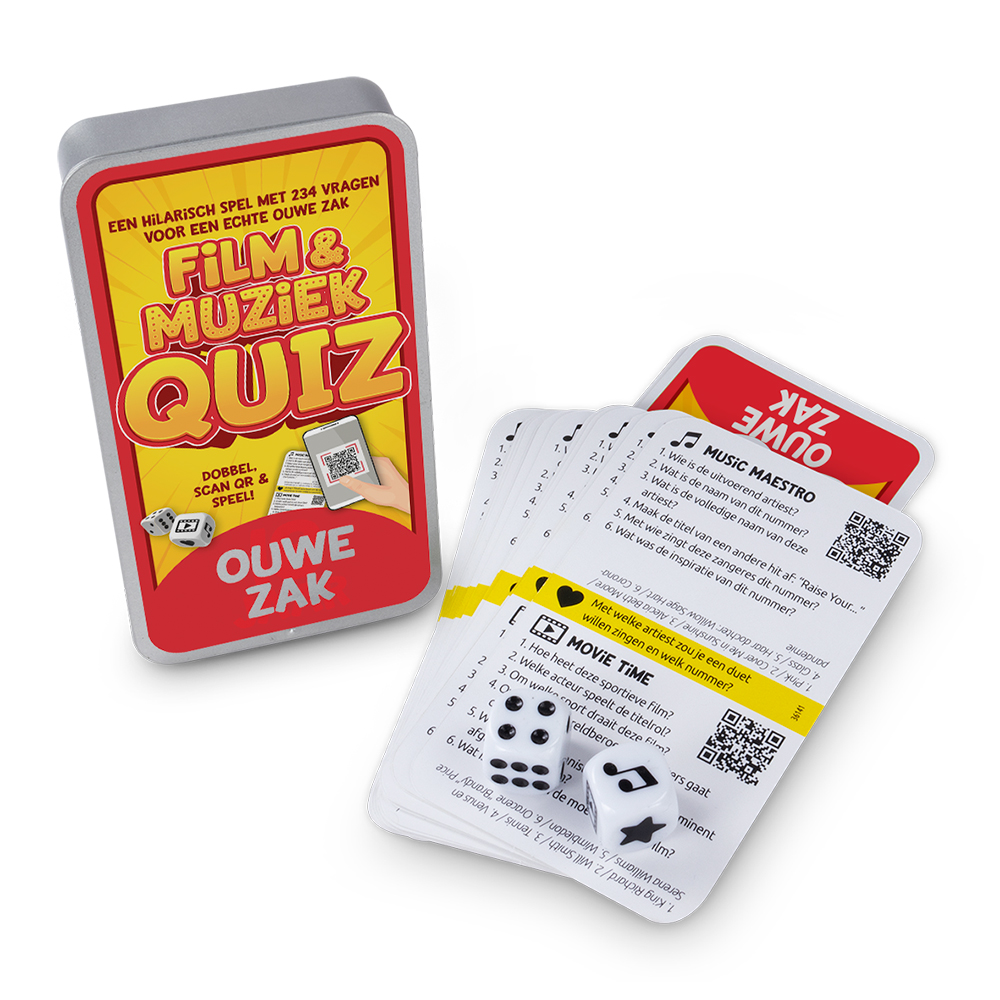 Gooi met de dobbelsteen, scan de QR-code en luister/bekijk het fragment en speel! Elk spel bevat 19 kaartjes en 2 dobbelstenen in een blikje met een luxe schuifbaar deksel.